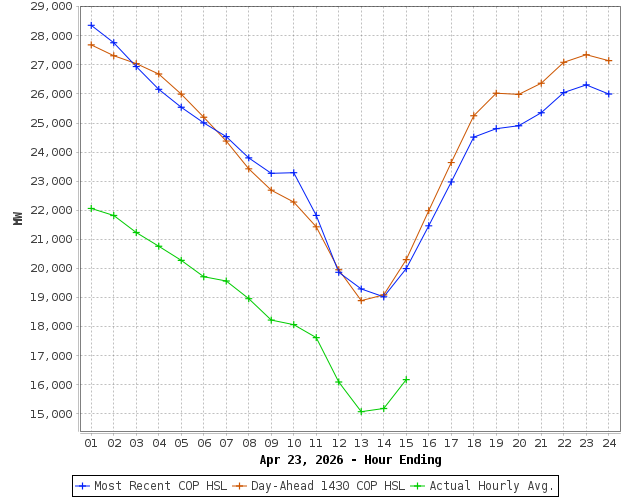 COP HSL for Current Day Forecasted and Actual Wind Power Production