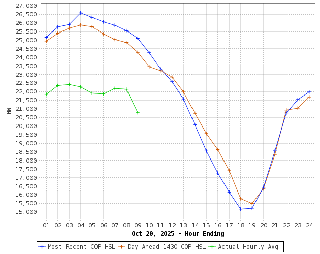 COP HSL for Current Day Forecasted and Actual Wind Power Production