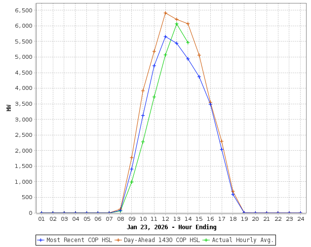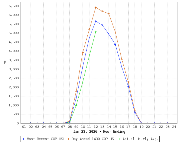 COP HSL for Current Day Forecasted and Actual PVGR Power Production
