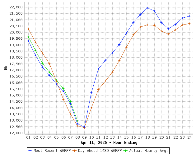 WGRPP for Current Day Forecasted and Actual Wind Power Production
